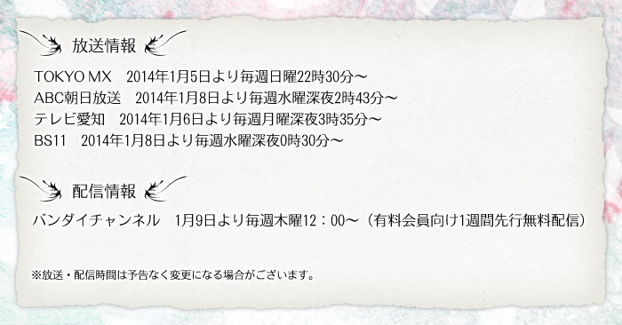 東京MXにて、1月13日・20日(日)23:30放送。